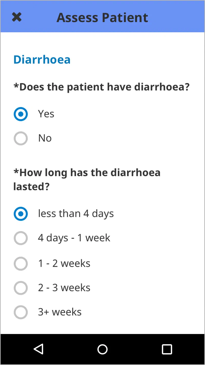 When a CHW clicks on a task, the care guide configured for that task displays. CHWs are then guided through questions for that specific workflow.